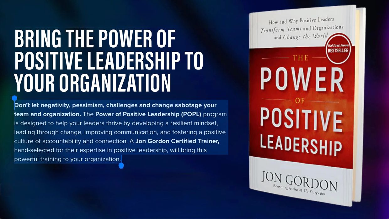 Build a great culture, lead with optimism, develop a connected and committed team and achieve results. In this workshop you’ll learn the principles and practices to enhance your leadership capability and leave with ideas and strategies to bring out the best in yourself and your team. The Power of Positive Leadership Workshop is an interactive program facilitated by a Certified Workshop Leader. *Virtual Workshops Also Available.